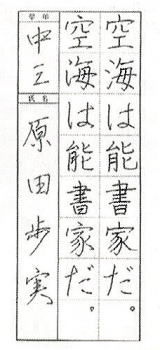 | 学 年 | 氏 名 | 所属教室 | 大東書道掲載月 | 書の教室掲載月 | ペン字教室掲載月 |